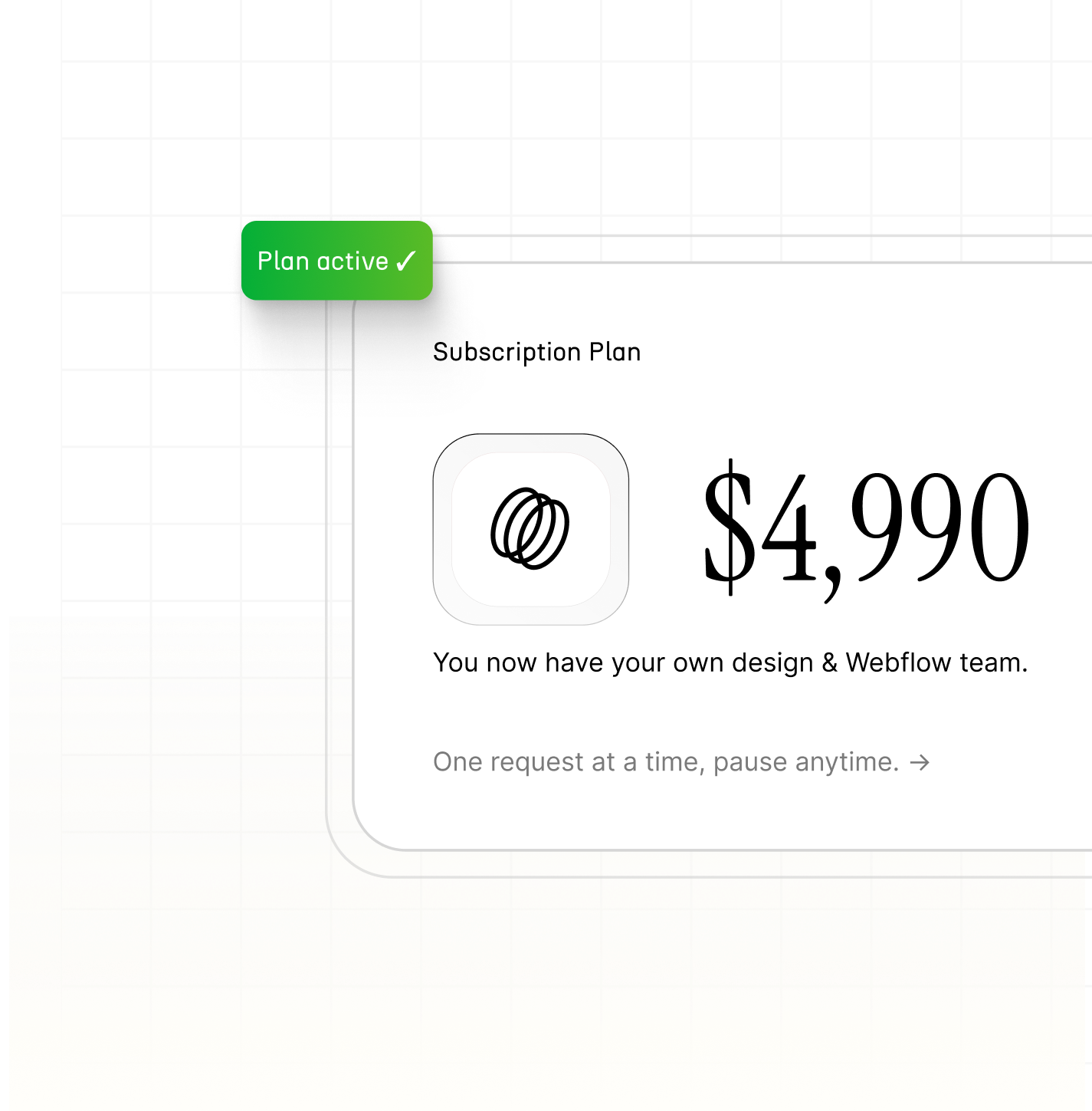 Unlimited design and No Code development for a fixed monthly fee. Pause or cancel anytime.